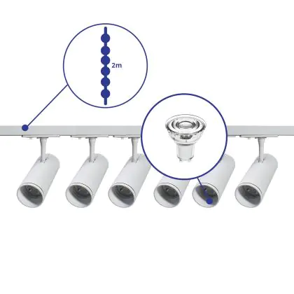 Complete Set 1-Phase Rail 2 Meter White | incl. 6x Spot + GU10 2700K 3W Dimmable + End Cap, Power Connector and I-Connector
