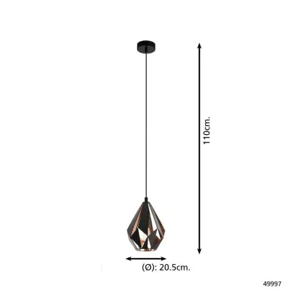 Eglo Pendant Carlton 1 Black, Copper | Suitable for E27
