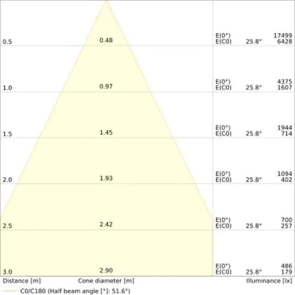 The Luminous Efficacy (lm/W) indicates how efficiently a light source uses energy. We divide the number of lumens by the wattage. The higher the number, the more efficient a product is in terms of energy consumption. LED lighting has a considerably higher lumen/Watt ratio than conventional lighting.