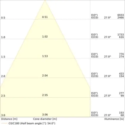 The colour code is a combination of colour rendering (CRI) and light colour (Kelvin). The first number indicates the colour rendering (1 = very poor colour rendering, 9 = maximum colour fastness). The second and third number contains the light colour. Example: the colour code 830 consists of good colour rendering (8) and warm white light (3000K). |