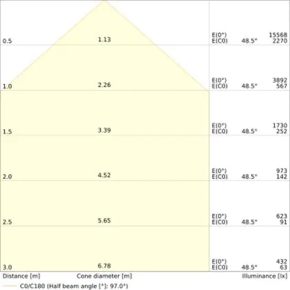 A beam angle indicates the angle of the light beam coming from a light source. The smaller the radiation angle in degrees (D), the narrower the beam angle.