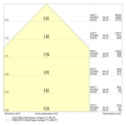 The colour code is a combination of colour rendering (CRI) and light colour (Kelvin). The first number indicates the colour rendering (1 = very poor colour rendering, 9 = maximum colour fastness). The second and third number contains the light colour. Example: the colour code 830 consists of good colour rendering (8) and warm white light (3000K). |