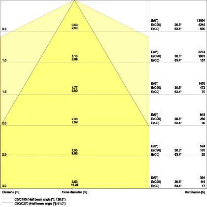 The colour code is a combination of colour rendering (CRI) and light colour (Kelvin). The first number indicates the colour rendering (1 = very poor colour rendering, 9 = maximum colour fastness). The second and third number contains the light colour. Example: the colour code 830 consists of good colour rendering (8) and warm white light (3000K). |