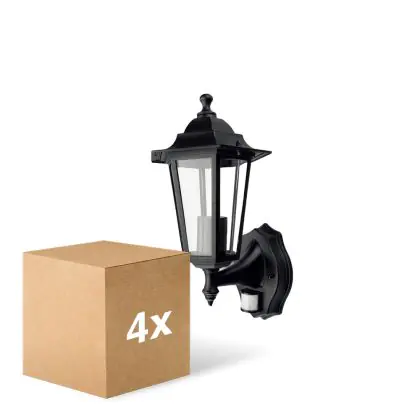 Multipack 4x D'Lite Wall Light Helora Black | IP44 - Suitable for 1x E27 - Motion Sensor