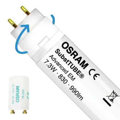 The Osram SubstiTUBEAdvanced is the perfect 18W replacer for fluorescent tubes in a fixture with a conventional ballast (recognizable by the fact that the fixture has a starter). You immediately save 42% on your energy costs after replacement.