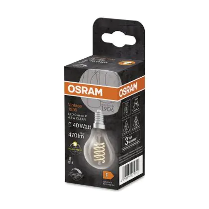 Osram Vintage 1906 LED Classic Slim E14 Pear Filament Clear 4.8W 470lm - 827 Extra Warm White | Dimmable - Replaces 40W