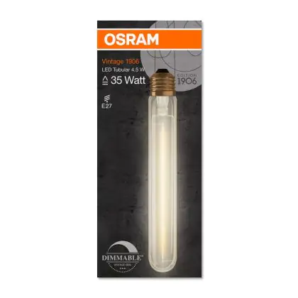 Osram Vintage 1906 LED E27 Tubular Filament Gold 4.5W 400lm - 824 Extra Warm White | Dimmable - Replaces 40W