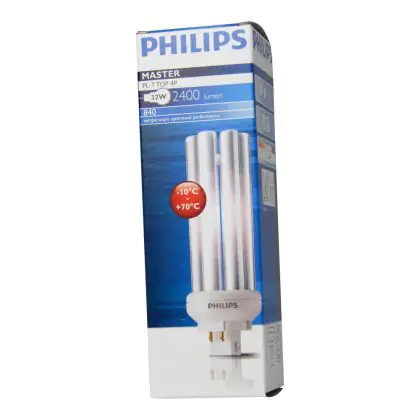 The Philips PL-T TOP 4P lamps are 4 pin socket fluorescent lamps that are very efficient for long run times. They are more efficient than 4P PL-T standard bulbs and their performance is optimized over wide temperature ranges. Philips PL-T TOP 32W 840 4P have a GX24q-3 socket type and measure 1200 cm.